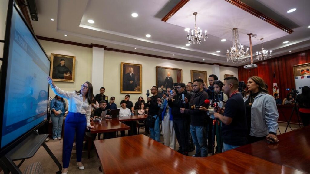 El rector Rodrigo Mendieta, junto a la vicerrectora académica Eulalia Calle y el director de Vinculación con la Sociedad, Luis Ayala, participaron en el lanzamiento oficial, este jueves 26 de febrero de 2026.